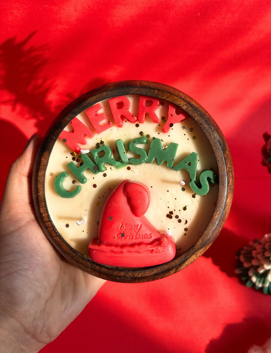 Merry Christmas Wooden Jar Candle with Santa Hat