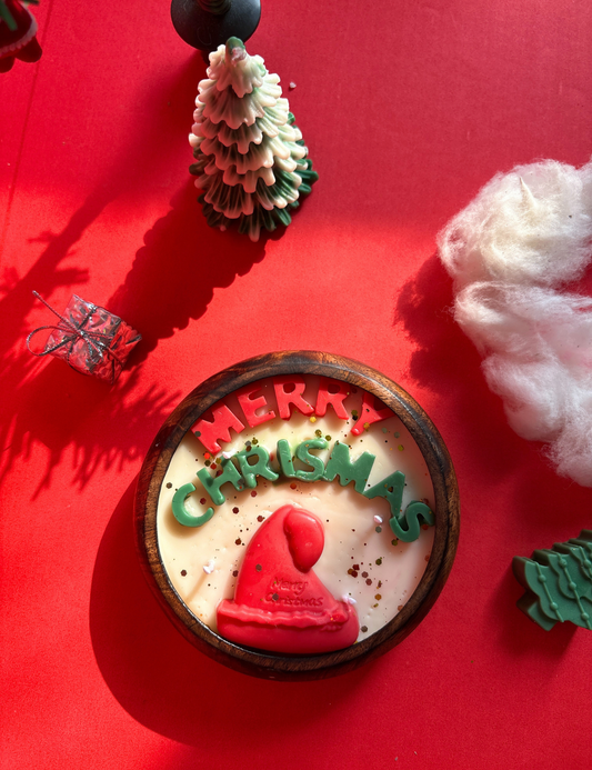 Merry Christmas Wooden Jar Candle with Santa Hat