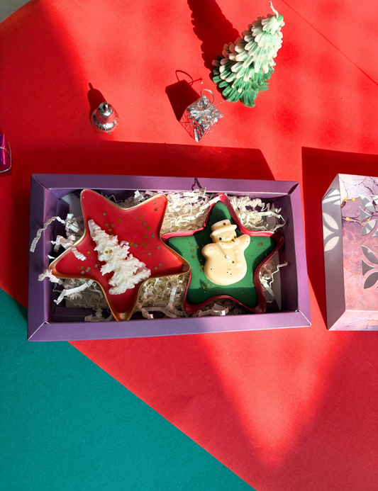 Holiday Star-Shaped Candle Duo with Snowman & Christmas Tree