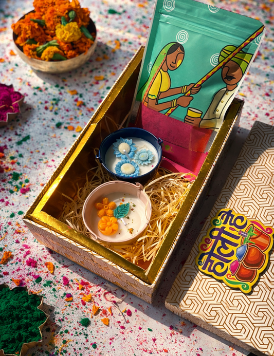 Premium Holi Hamper Box – Phool Gulal,Scented Candles & Chocolate