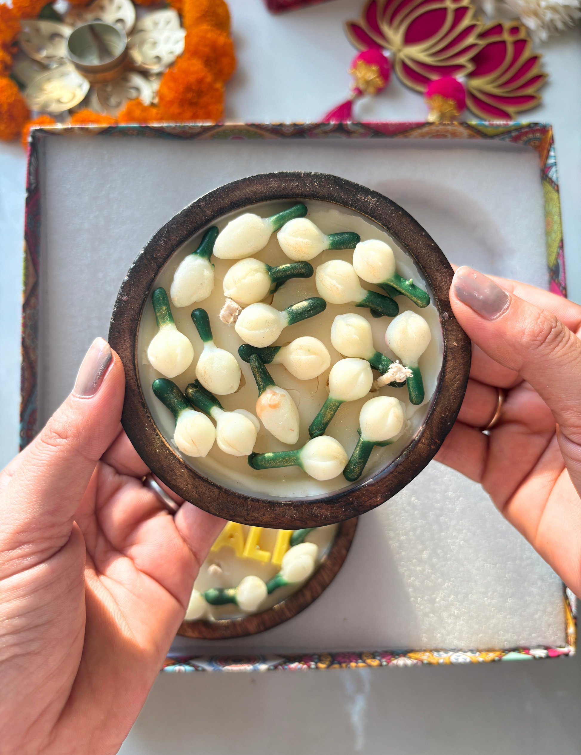 Made from premium quality wax and infused with soothing fragrances, each candle burns evenly to create a peaceful and aromatic ambiance. Whether you’re illuminating your home temple, decorating your festive table, or gifting loved ones, this eco-friendly and artistic candle set is the perfect choice for a memorable Diwali.