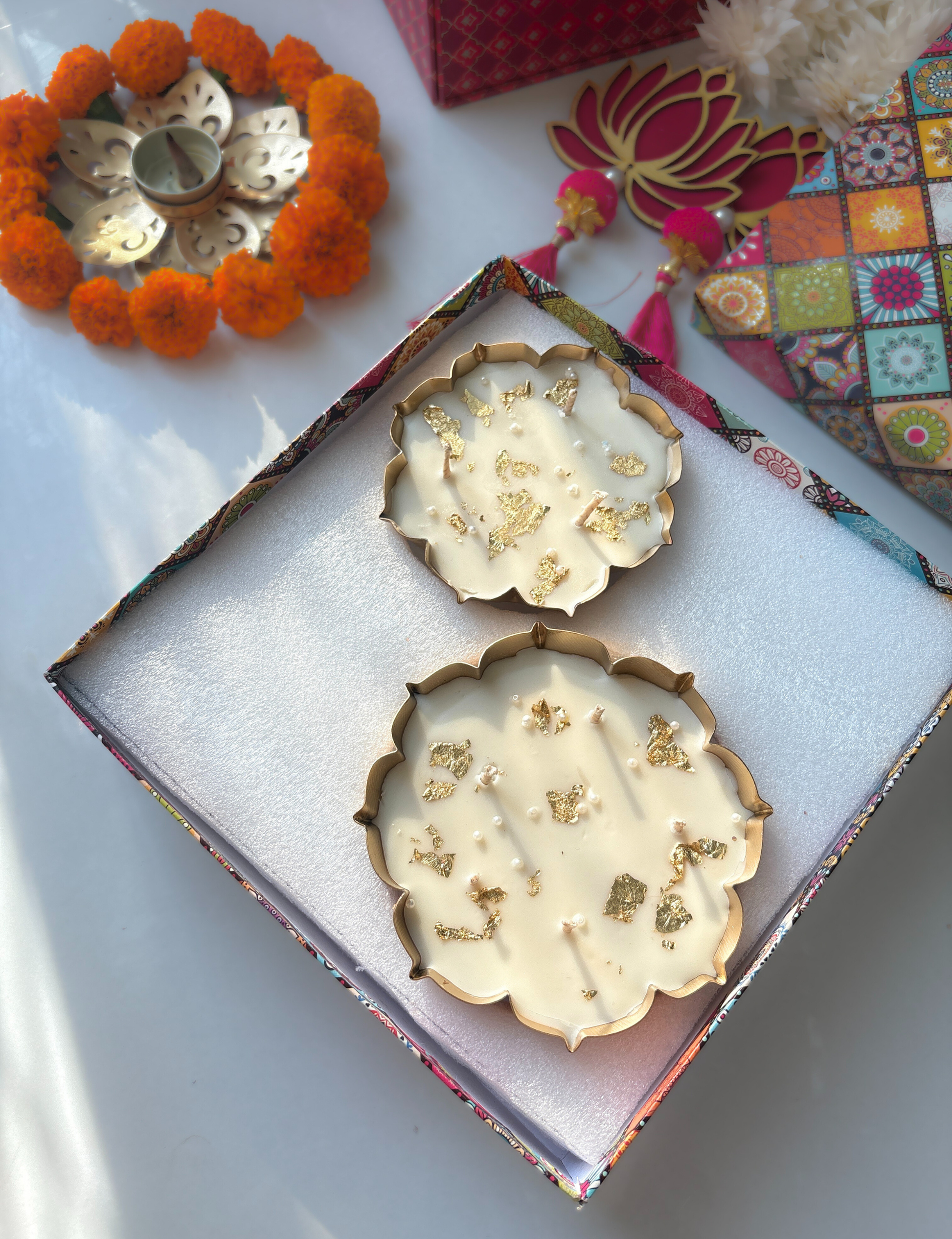 Luxury Lotus Urli Candle Set with Gold Foil – Premium Diwali Décor & Gift Hamper